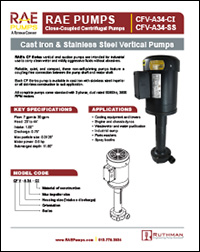 RAE’s CF Series vertical end suction pumps are intended for industrial use to carry clean water and mildly aggressive fluids without abrasives.